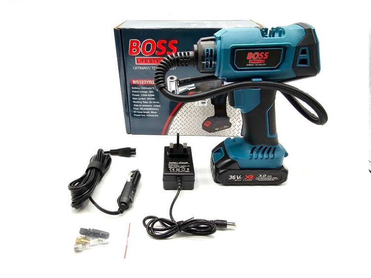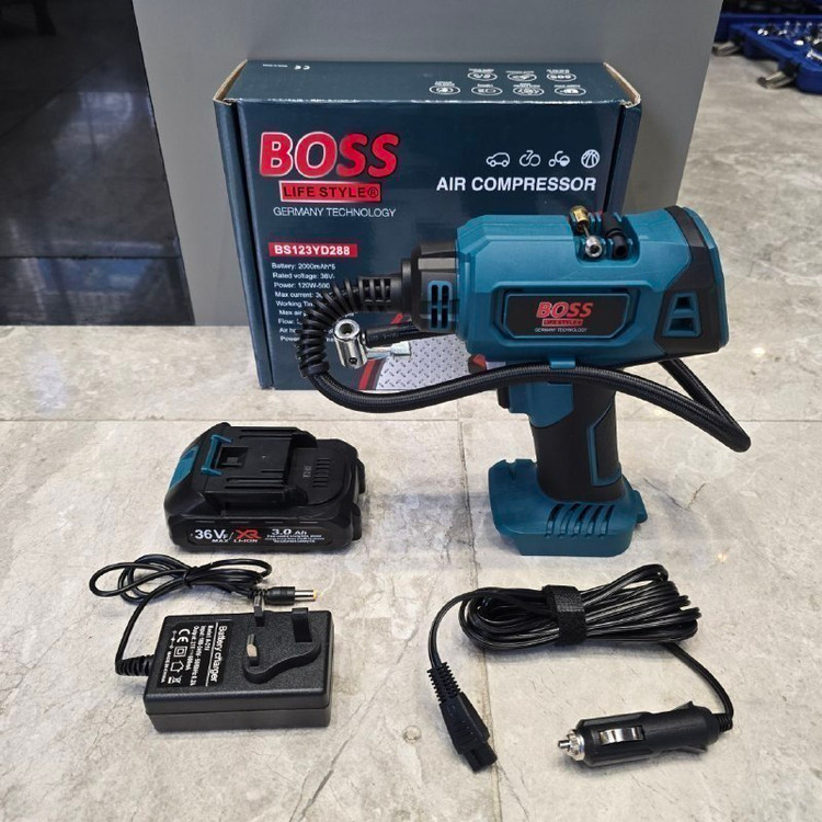 آداپتور، کابل تبدیل به فندکی، سه عدد سری (جهت باد زدن توپ، دوچرخه، قایق بادی و ...)